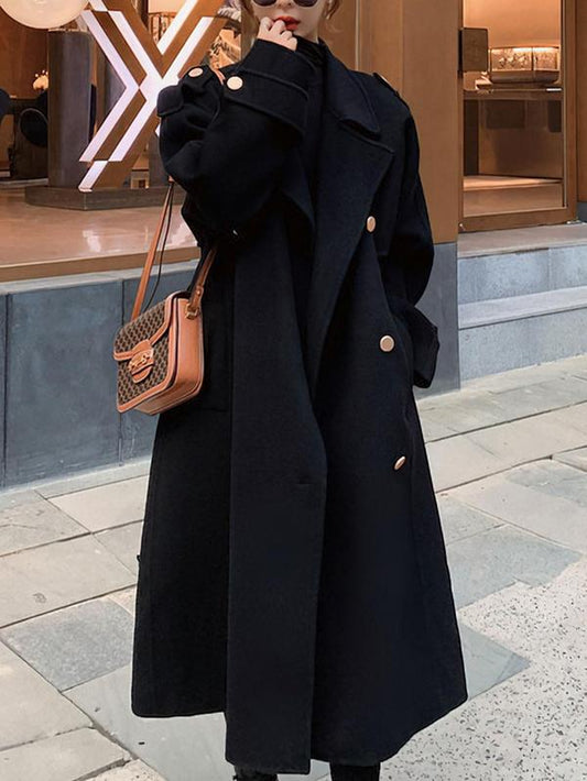 Ebossy Women's Winter Double Breasted Midi Long Wool Pea Coat Notch Lapel Trench Coat, Minimalist Basic Jackets, Thermal Lined Outerwear